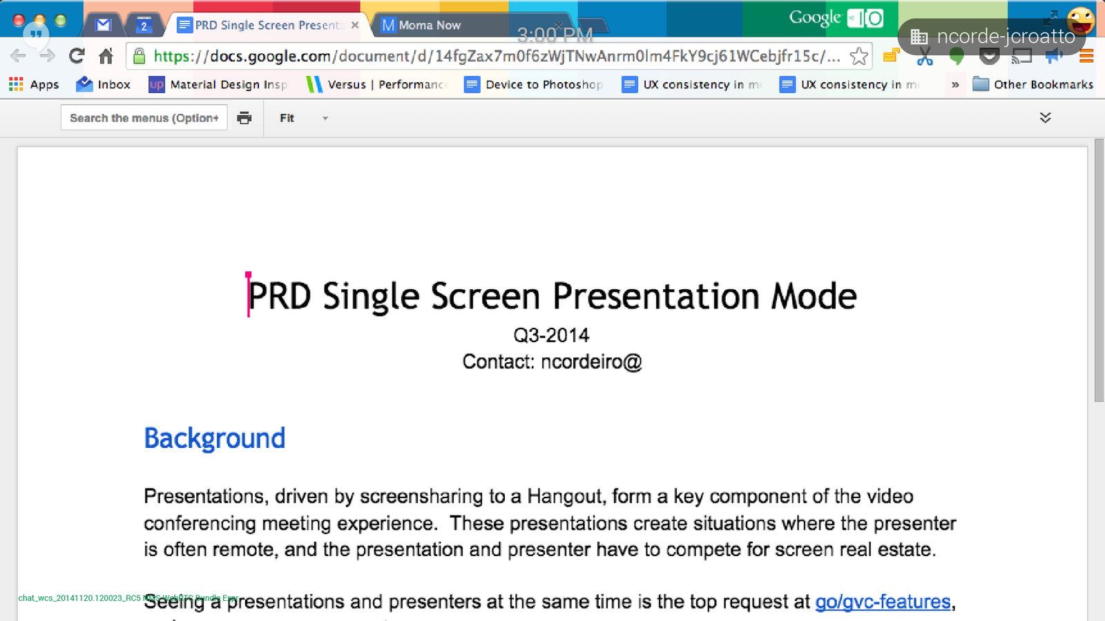I had been working on the internal video conferencing system for a while off and on. Usually it was light UI fixes, discussions with PM and Eng for updates. During this time GVC was internally new, it was starting to mature separately than other products.